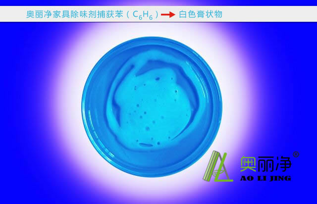 室溫狀態(tài)下奧麗凈家具除味劑中的高分子化合物與氨類(lèi)化合物發(fā)生交聯(lián)反應(yīng),形成的凝膠性質(zhì)穩(wěn)定,土壤中可降解,符合環(huán)保標(biāo)準(zhǔn)。